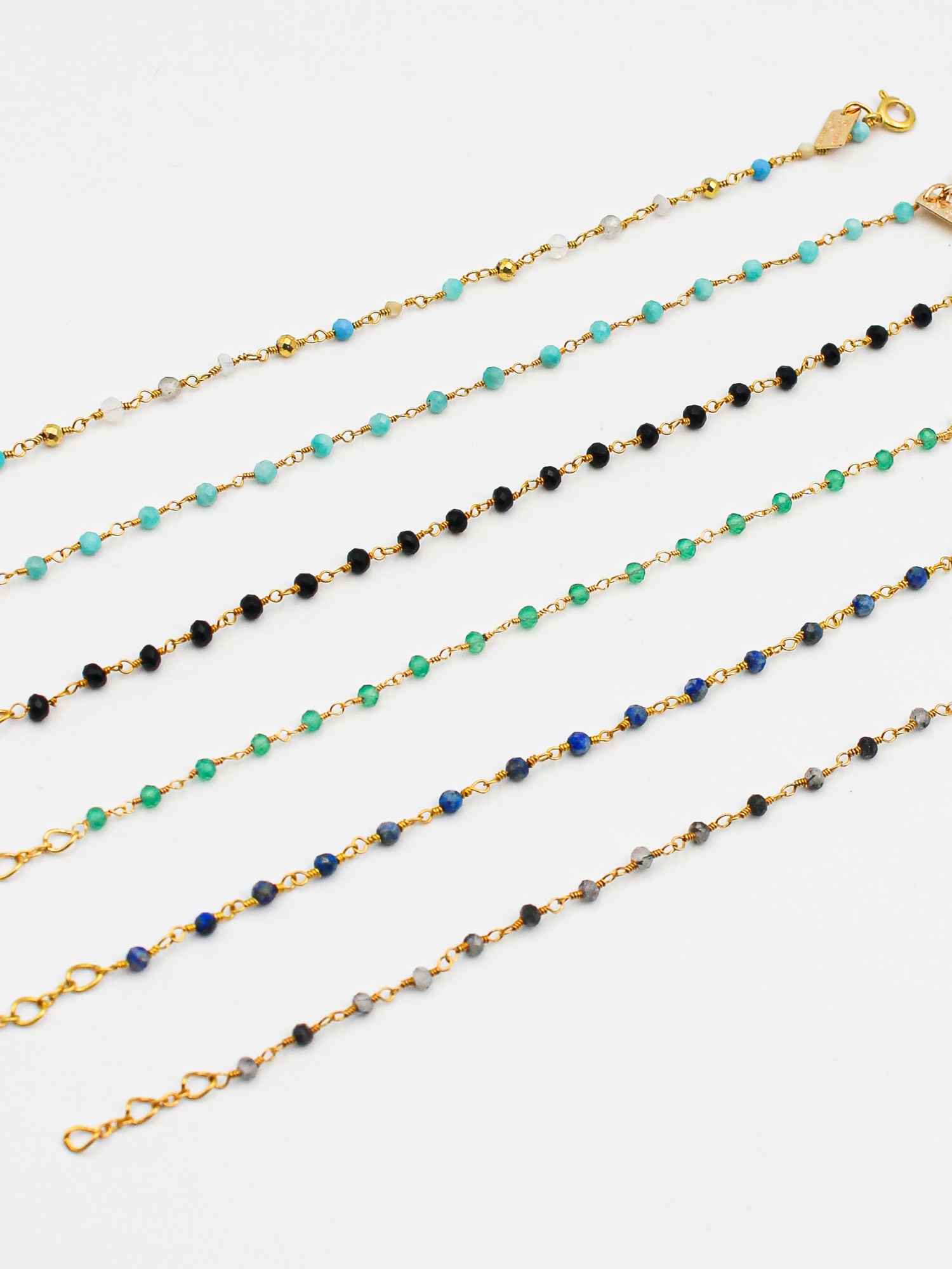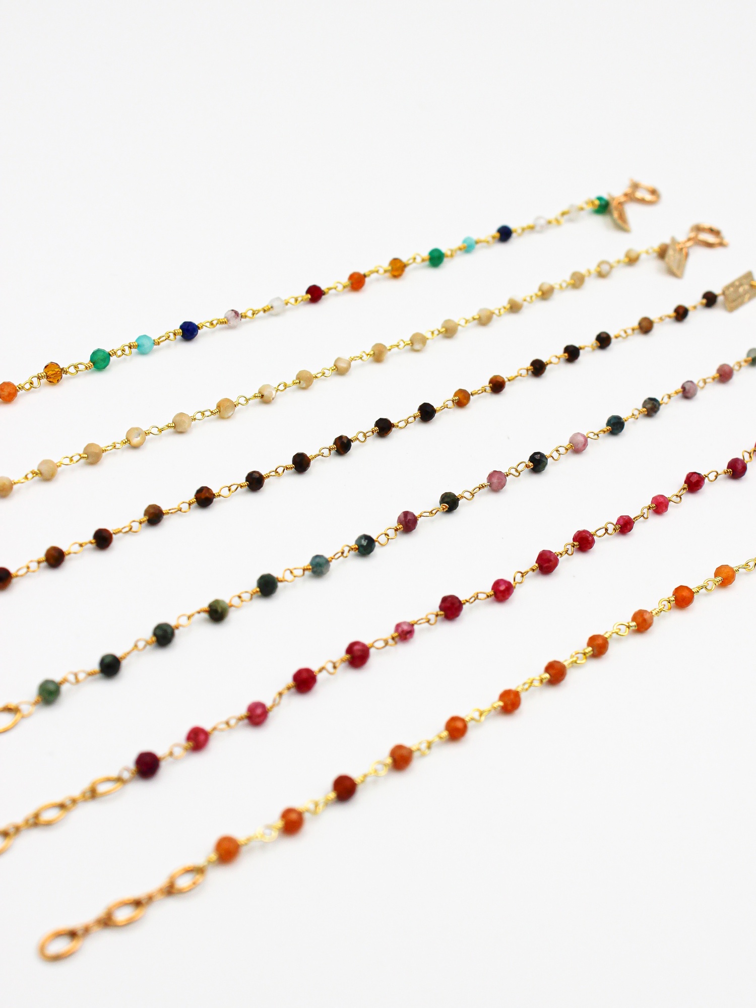 Le bracelet pierres fines CAROLE est la pièce essentielle, le basique qui attirera le regard à chacun de vos mouvements. Composé d'un chaînage de perles en pierres fines colorées, il s'adaptera à tous les looks. Ce modèle existe dans plusieurs coloris, comme tous les bijoux de la gamme.