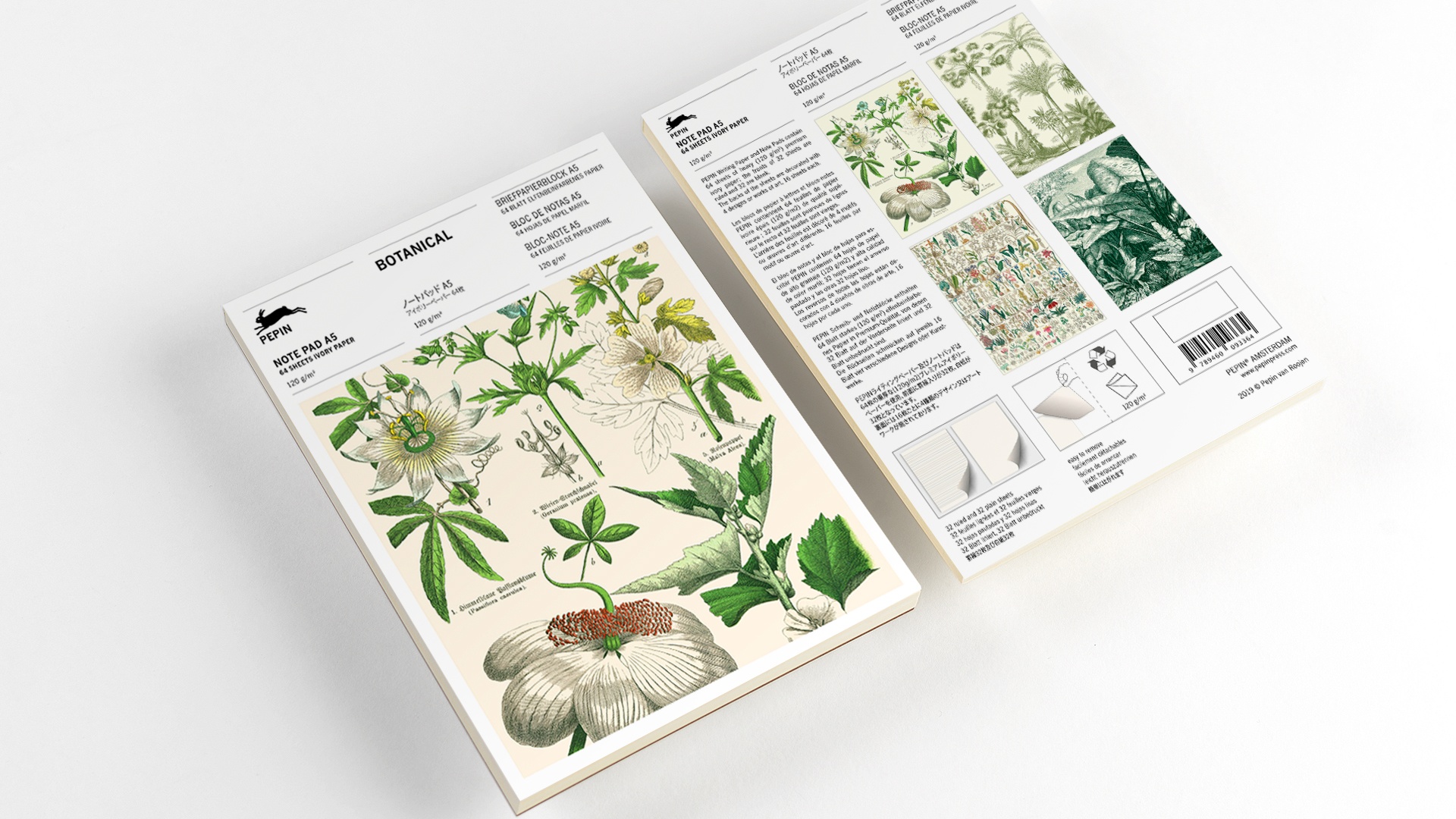 Les blocs-notes PEPIN contiennent 64 feuilles de papier ivoire de qualitŽ supŽrieure de 120 g/m2, dont la moitiŽ sont lignŽes et l'autre vierge afin qu'elles puissent tre utilisŽes pour Žcrire ˆ la main, dessiner ainsi que pour passer dans une imprimante. Le revers des feuilles est dŽcorŽ de 4 motifs diffŽrents par bloc, de 16 feuilles chacun. Les blocs-notes sont disponibles dans une gamme de styles au format A4 ou A5. SŽparŽment, des packs d'enveloppes DL ou C6 assortis sont Žgalement disponibles avec des motifs complŽmentaires.