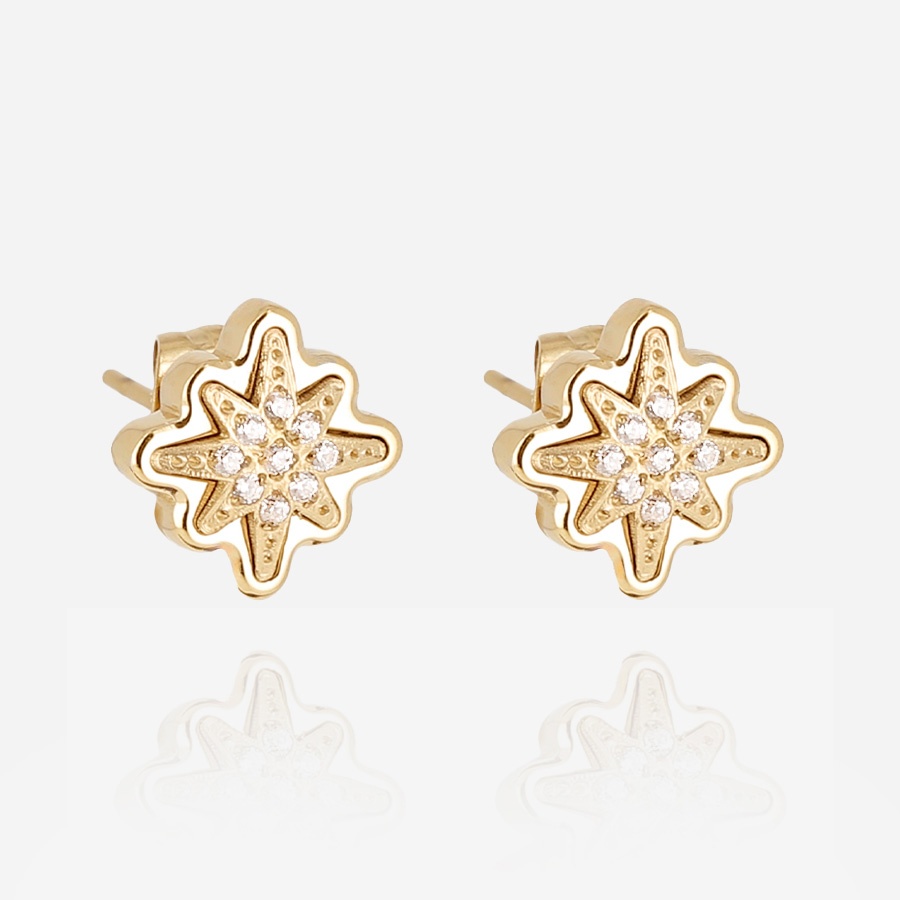 BOUCLE D'OREILLE-Acilia-ACIER DORE-zirconium sertis