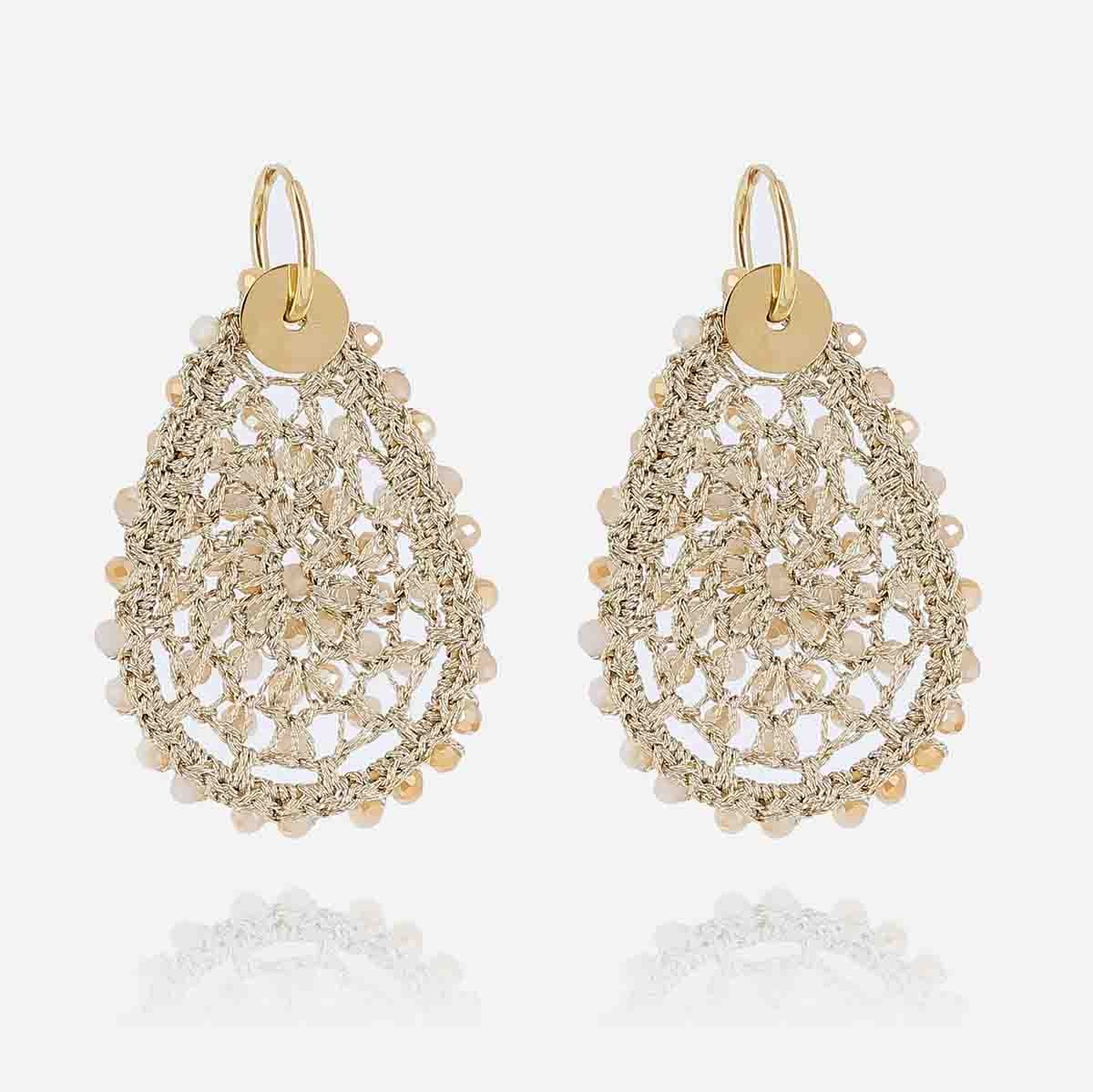 BOUCLE D'OREILLE-LONG-ACIER DORE-perle de verre