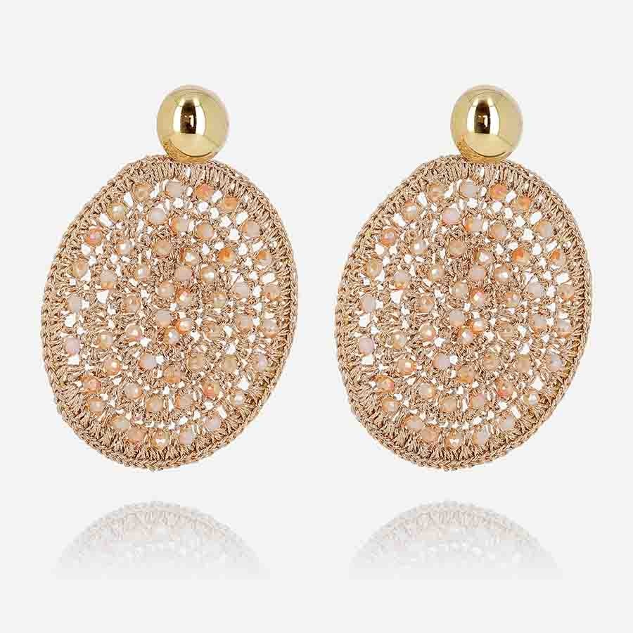 BOUCLE D'OREILLE-LONG-ACIER DORE-perles de verre