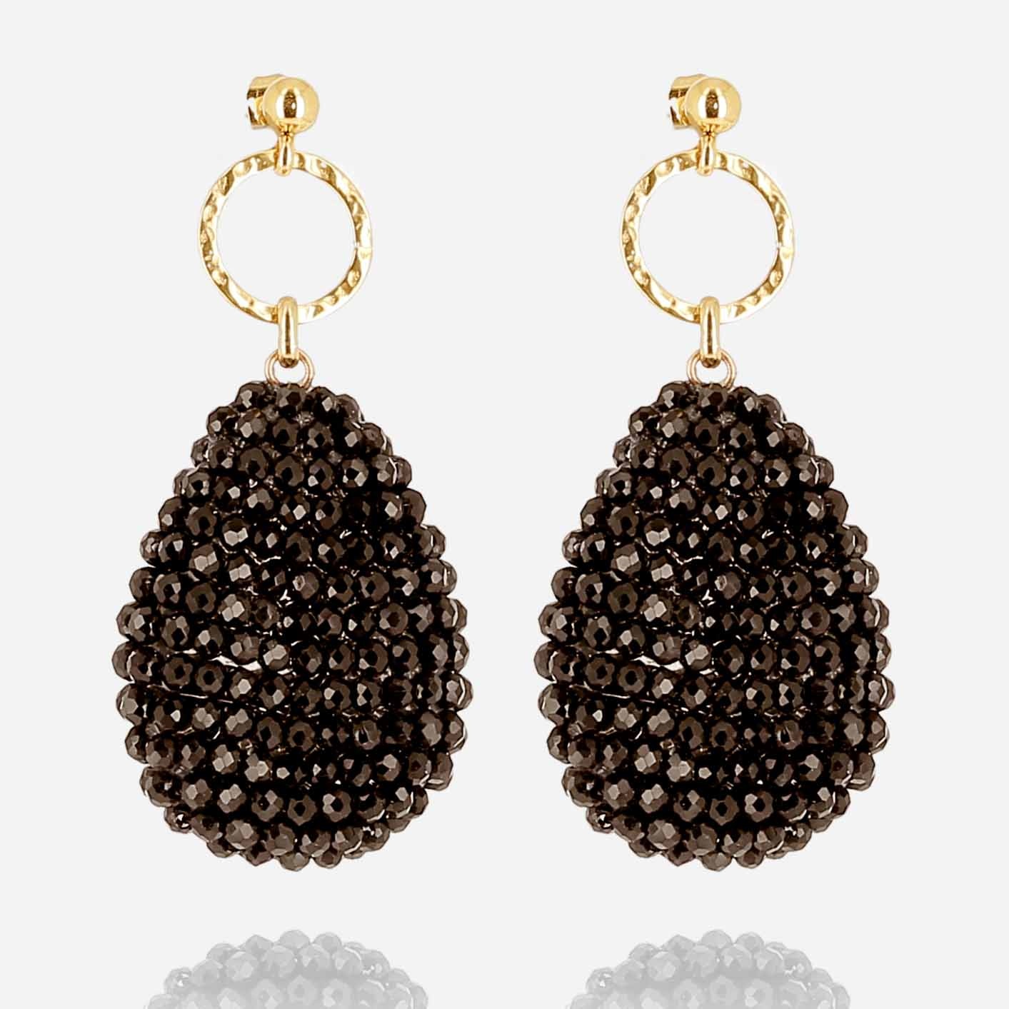 BOUCLE D'OREILLE-LONG-ACIER DORE-perles de verre