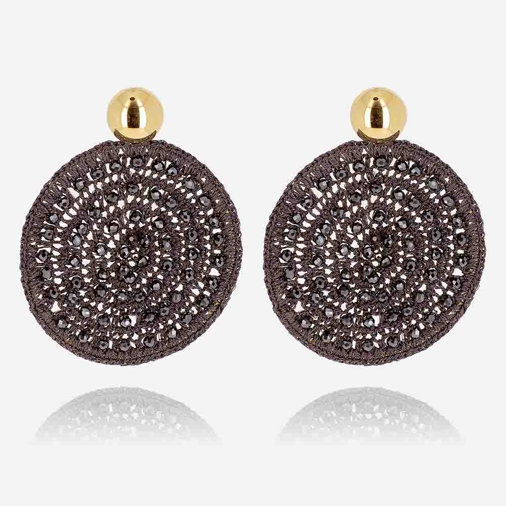 BOUCLE D'OREILLE-LONG-ACIER DORE-perles de verre