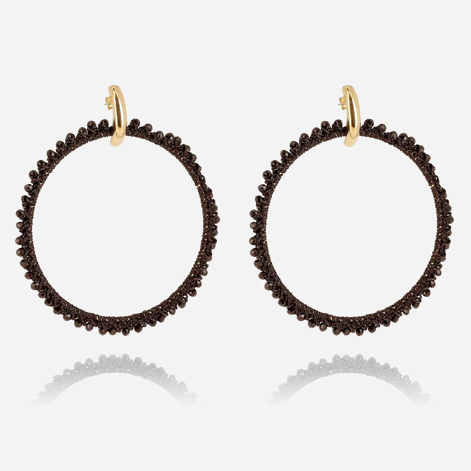 BOUCLE D'OREILLE-LONG-ACIER DORE-perles de verre