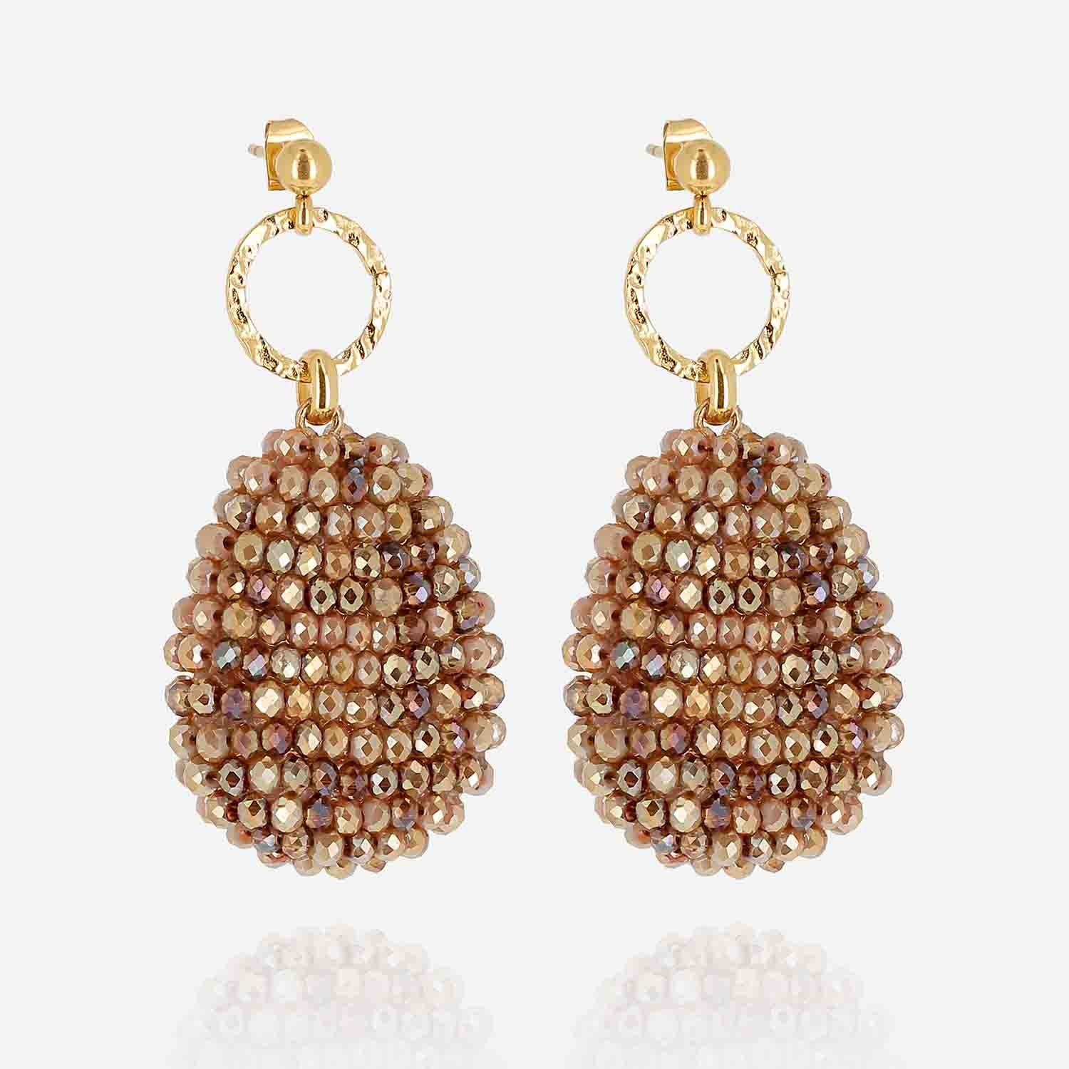 BOUCLE D'OREILLE-LONG-ACIER DORE-perles de verre