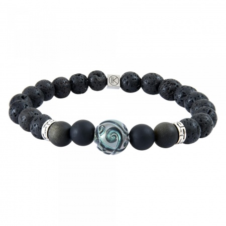 Accueil > Pour lui > Bracelet homme > Bracelet pierre de lave, obsidienne dorée 8mm et perle de Tahiti gravée