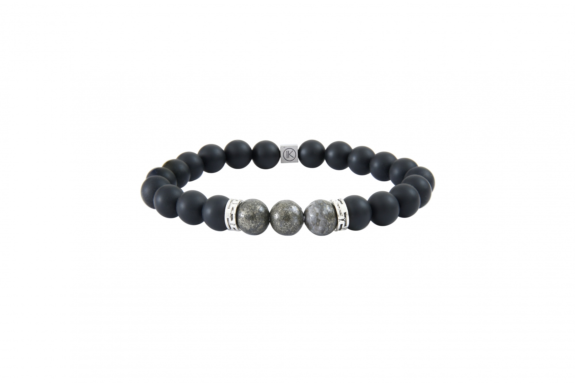 Bracelet pyrite poli et agate noir dépoli 8mm