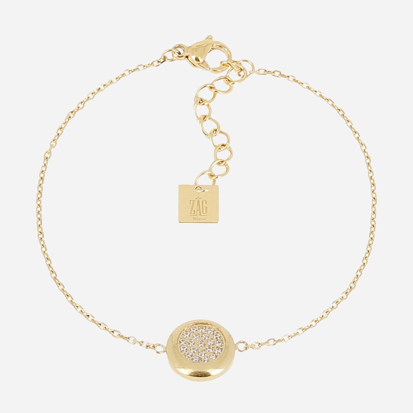 BRACELET-SIMPLE-ACIER DORE-15+3cm-zirconium sertis