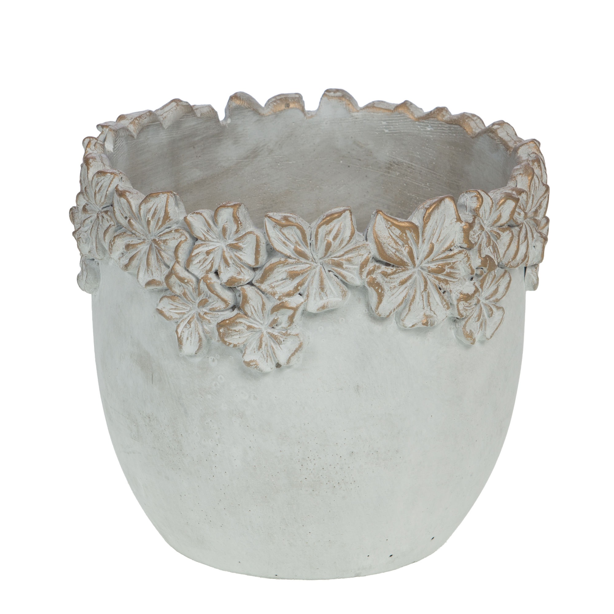 Cache-pot en ciment de petite taille (13x13x11 cm), idéal pour enrichir une gamme de décoration intérieure. Sa finition texturée avec motifs floraux en relief apporte une touche artisanale et naturelle, adaptée à une clientèle recherchant des objets décoratifs robustes et esthétiques. Léger malgré sa matière, il s'intègre facilement dans divers univers déco.