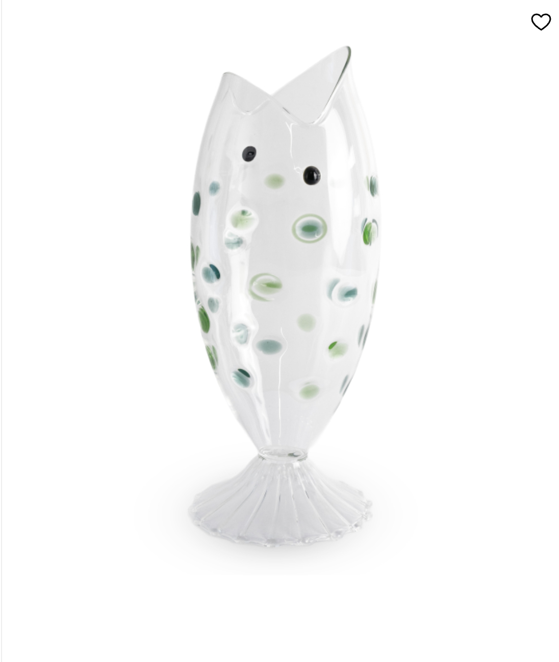 Conçue en verre de haute qualité, cette pièce combine une fonction utile et une esthétique originale. La silhouette fluide du poisson capte les regards, tandis que le motif « taches vertes » injecte une note contemporaine et naturelle. Avec une contenance généreuse (~ 1,2 L) et des dimensions d’environ Ø 11,5 cm × H 27,5 cm, elle trouve sa place sur la table, dans le salon ou même en tant qu’élément central sur un buffet.