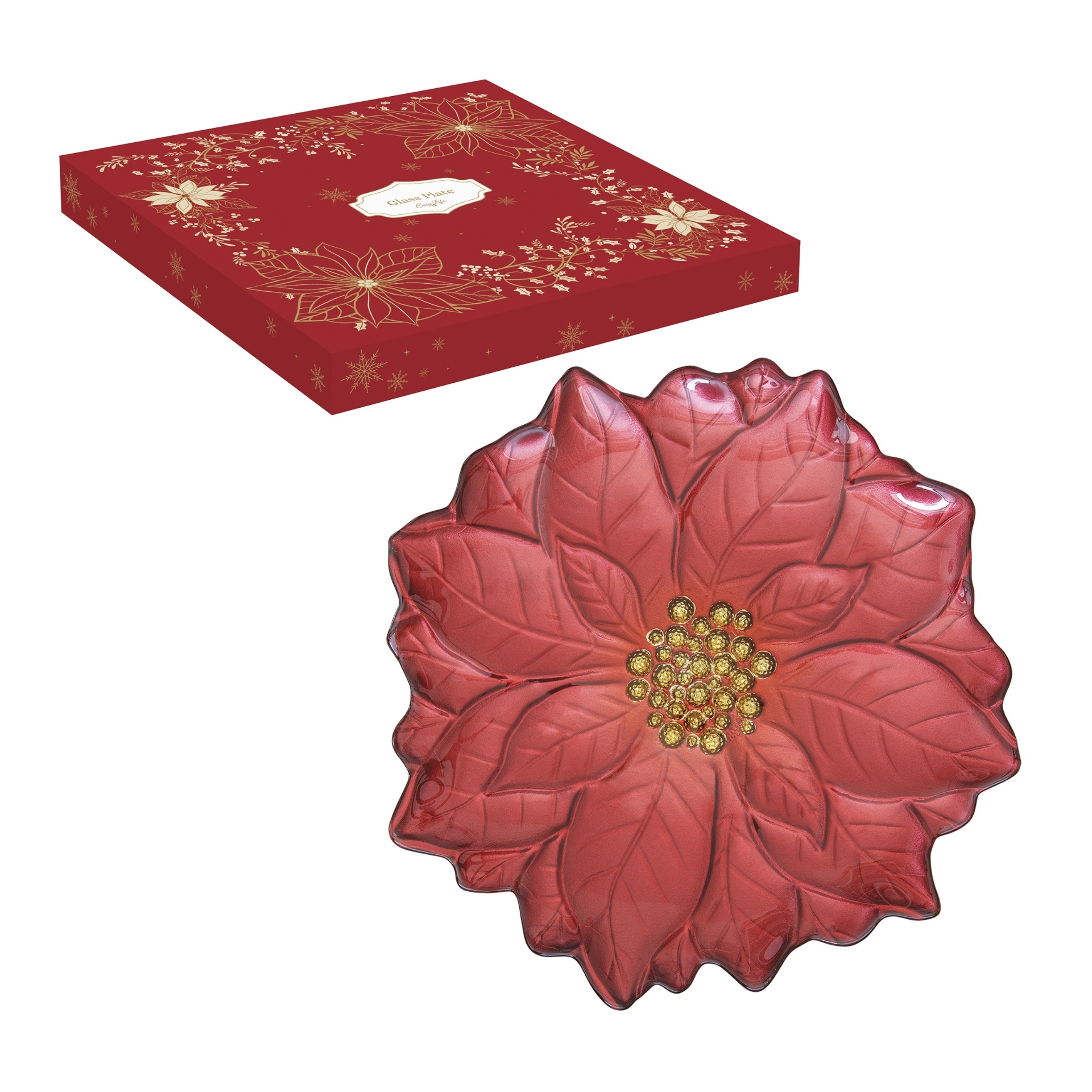 COFFRET PLAT DE SERVICE - Ø31cm - EN VERRE ROUGE ET OR