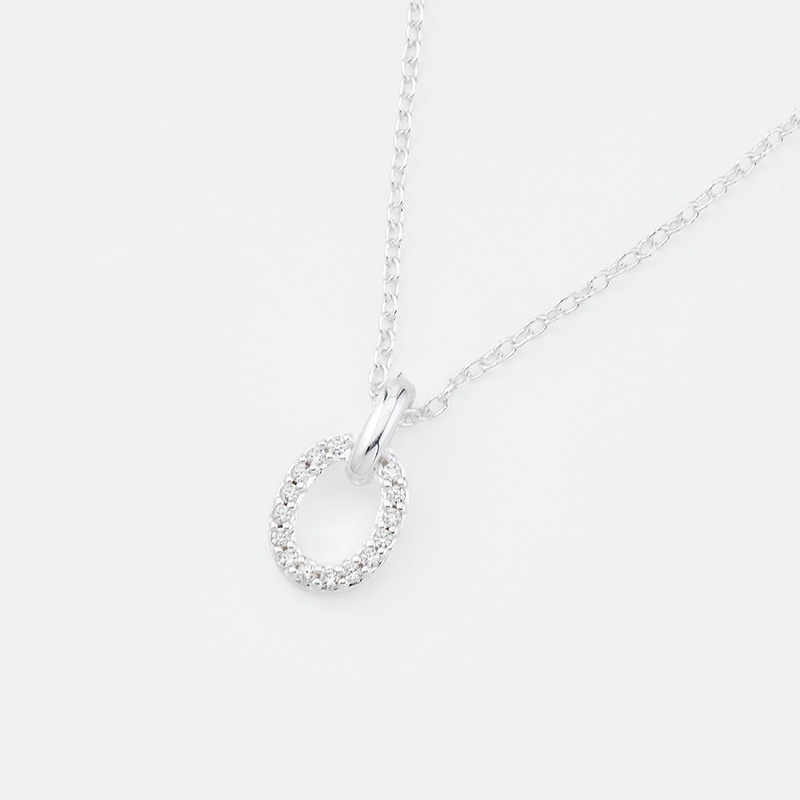 Réf. : C10826 COLLIER EN ARGENT FORME D'UNE CHAINETTE AVEC EN SON CENTRE UN OVALE PENDANT DECORE D'OXYDES BLANCS