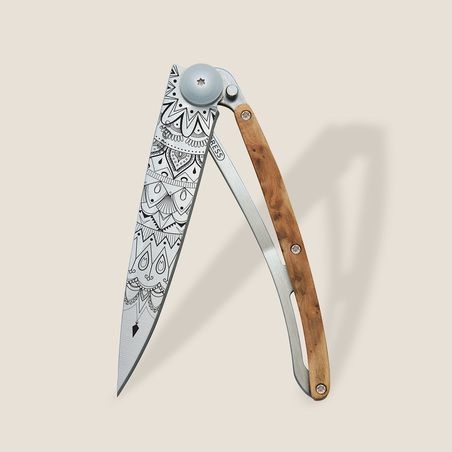 Couteau Deejo 37g - Lame Titane - Manche Genévrier - Mandala