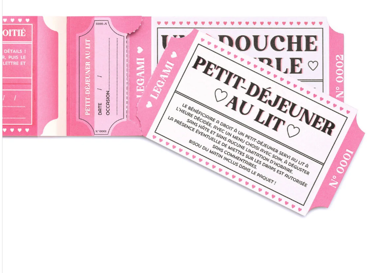 Accueil > Petit plus > Papeterie > Carterie-Ecriture > GIFT VOUCHERS - CARNET DE 24 BONS - HEART