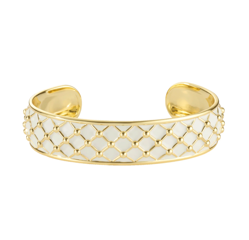 Jonc ouvert tresse cloisonée en email ajustable en laiton finition or