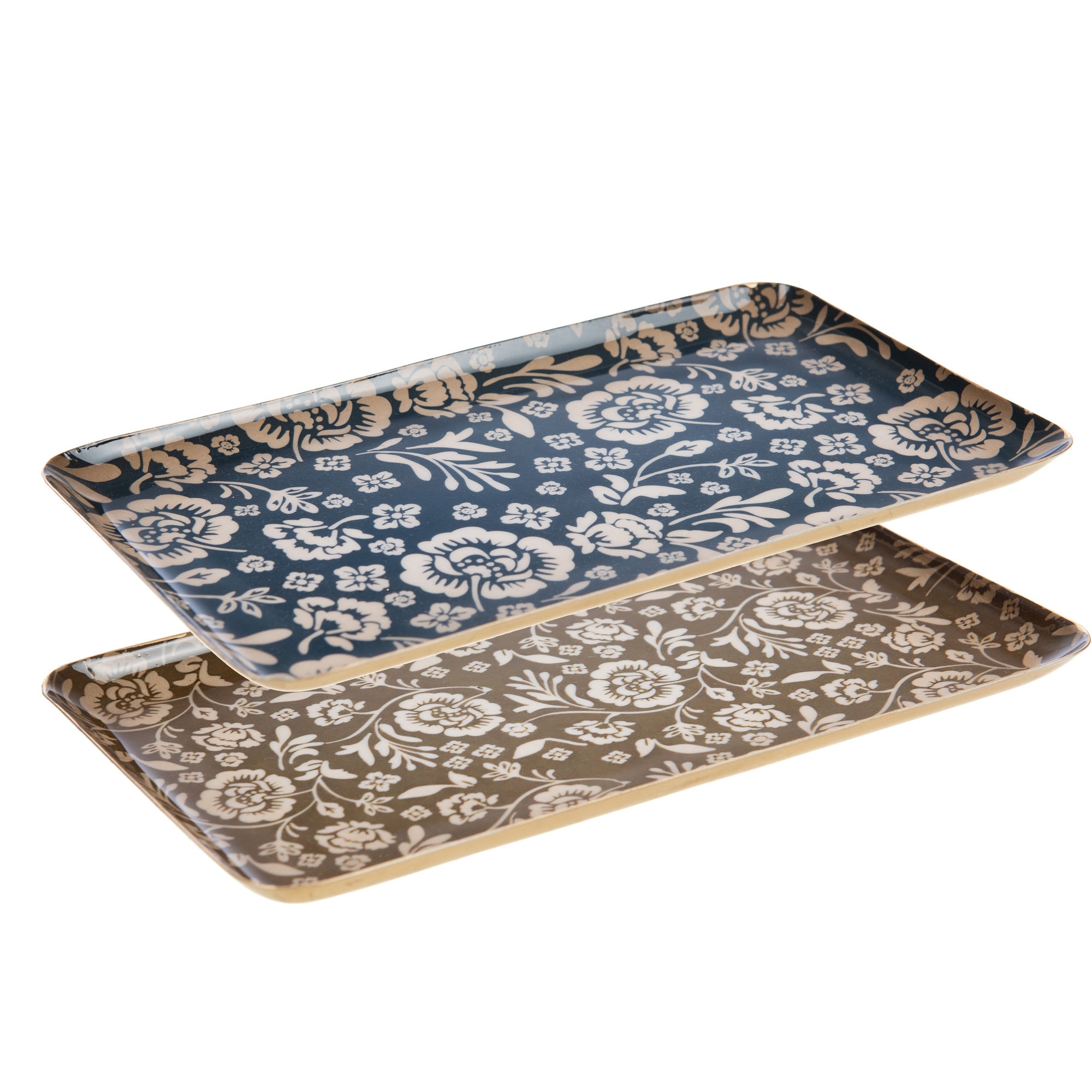 Utilisez ce plateau pour servir des boissons, des hors-d'œuvre, ou même comme élément décoratif sur une table basse. Les motifs blancs apportent une touche de grâce à votre service tout en offrant une surface pratique pour présenter vos objets.