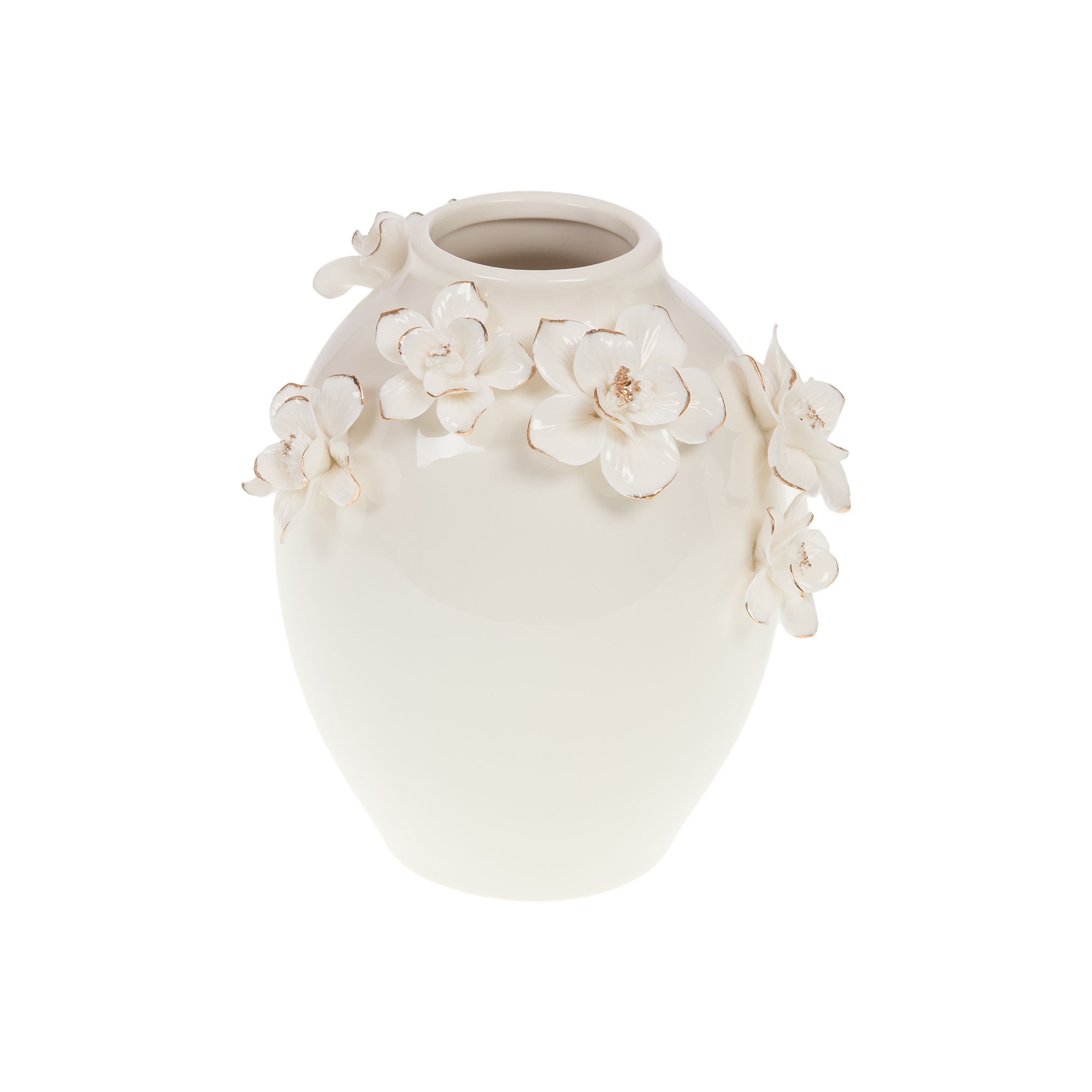 Vase en céramique au format moyen (18 cm de hauteur) alliant élégance et modernité. Sa finition blanche mate est sublimée par des détails floraux en relief, apportant une touche artistique et raffinée. Ce modèle tendance et épuré s'intègre facilement dans une gamme contemporaine, séduisant une clientèle à la recherche d'objets décoratifs à forte valeur ajoutée esthétique.